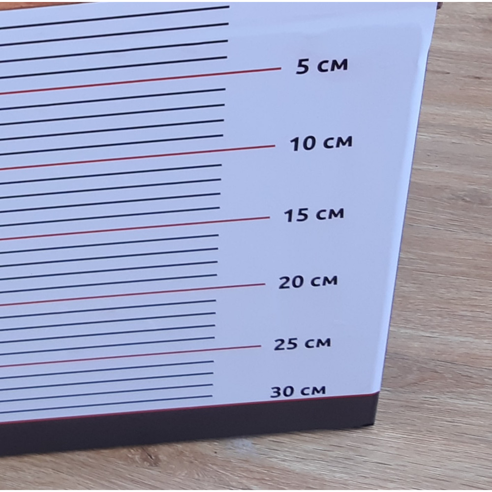- Оборудована стойкими наклейками с разметкой до 30 см.