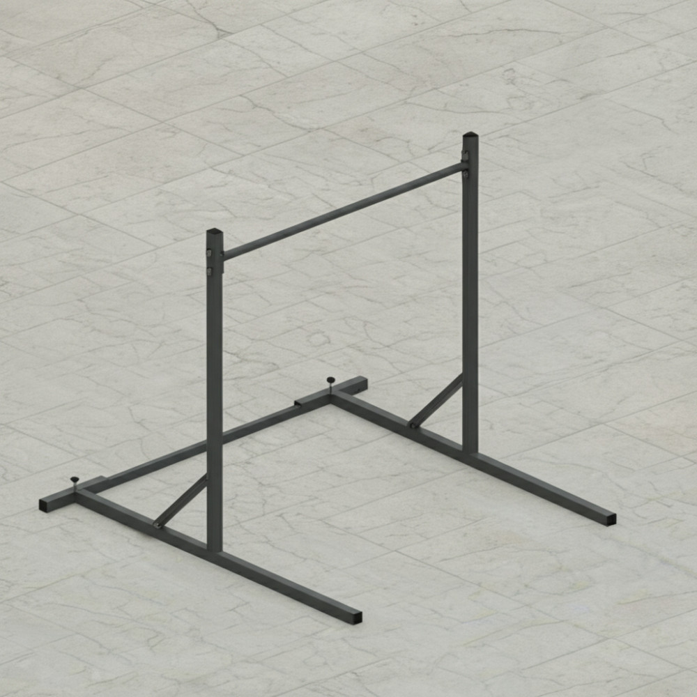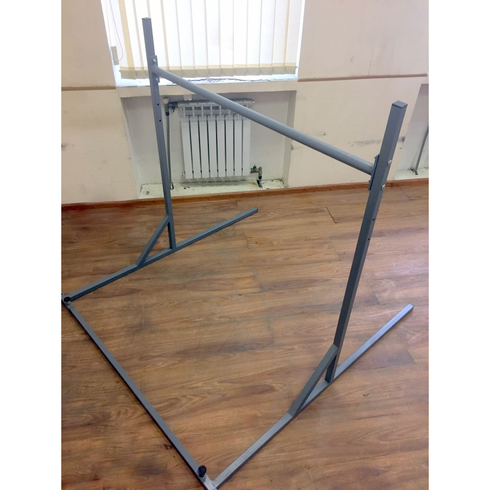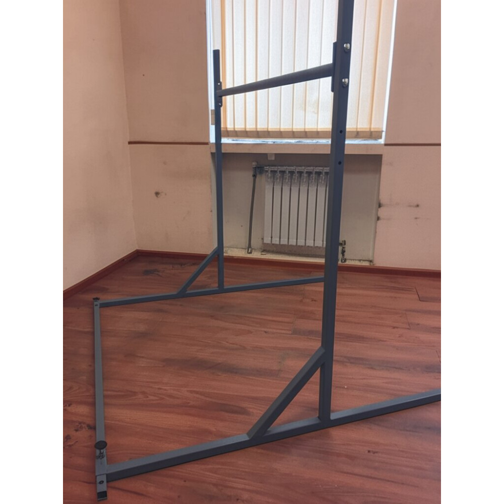 Низкая перекладина представляет собой сборно-разборную конструкцию, состоящую из двух устойчивых боковин соединенных внизу поперечной планкой а вверху грифом перекладины. Благодаря сборной конструкции снаряд легко транспортировать и хранить. Тренажер выполнен на соединениях из болтов.