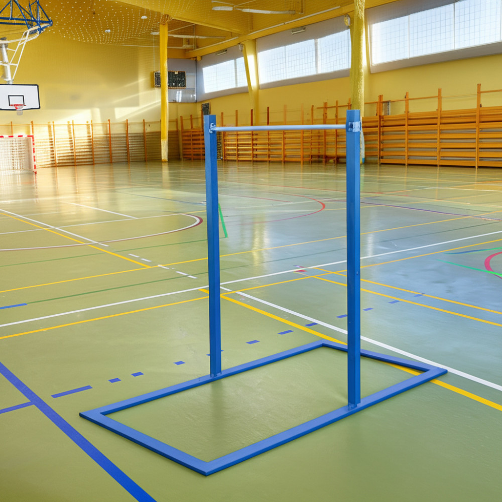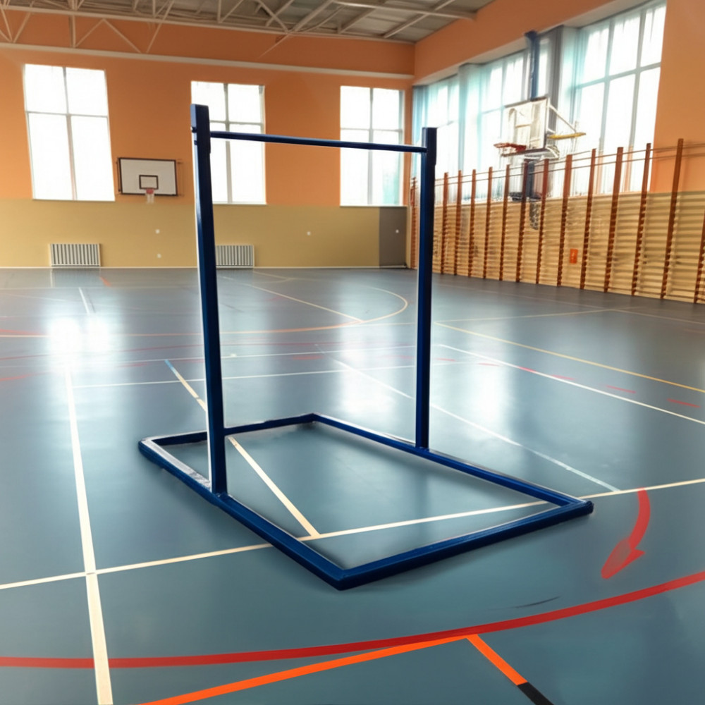 Напольный переносной турник высотой 240 см с перекладиной 120 см, предназначен для выполнения нормативов и подходит для спортсменов до 188 см роста.