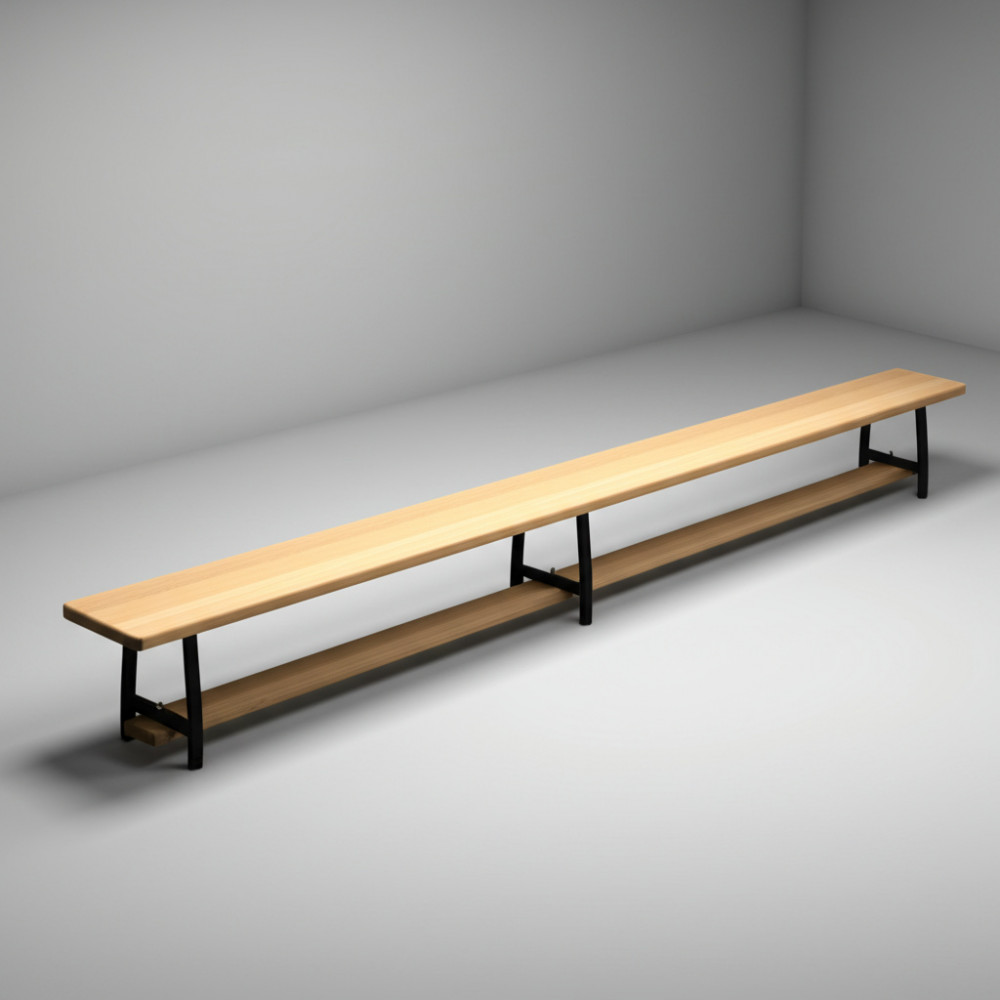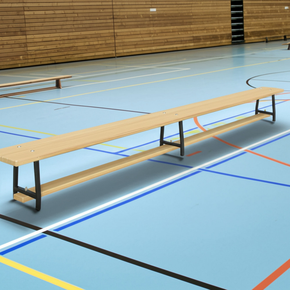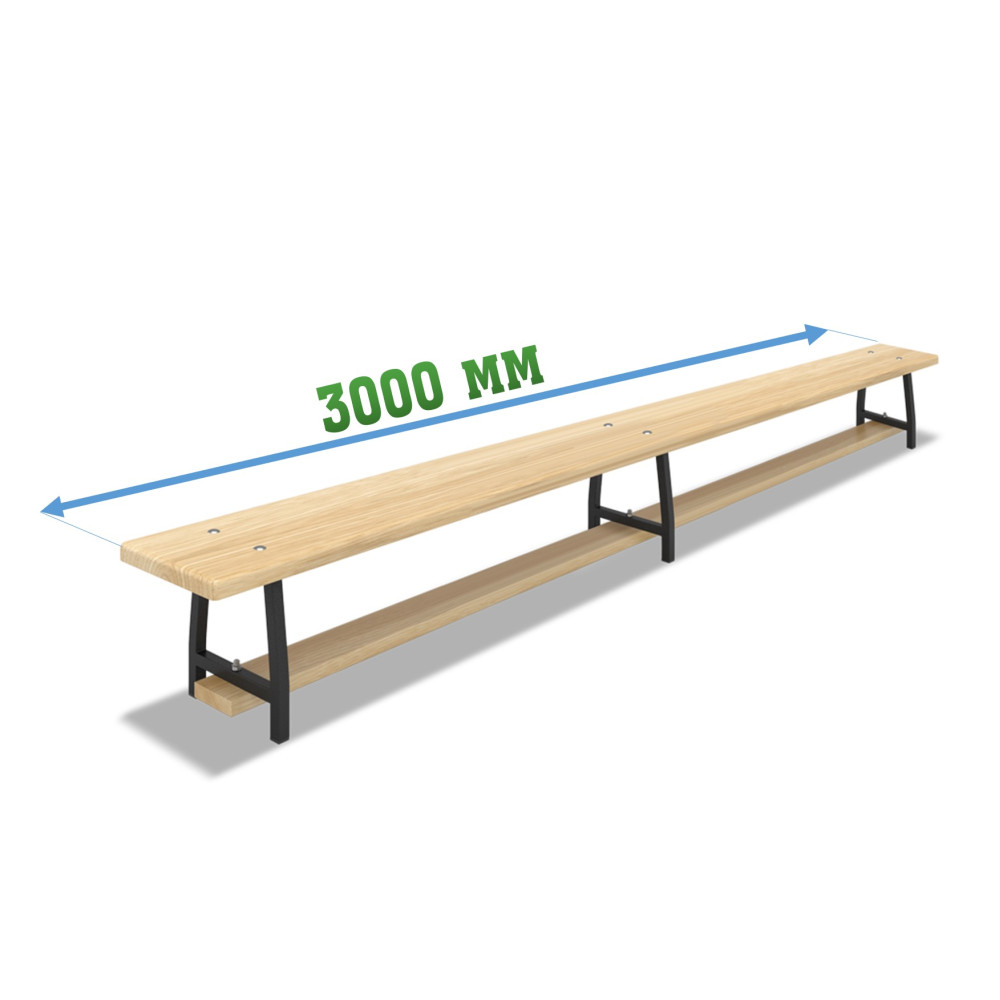 Гимнастическая скамья длиной 3,0 м на металлических ножках, используемая для тренировок и различных спортивных упражнений.