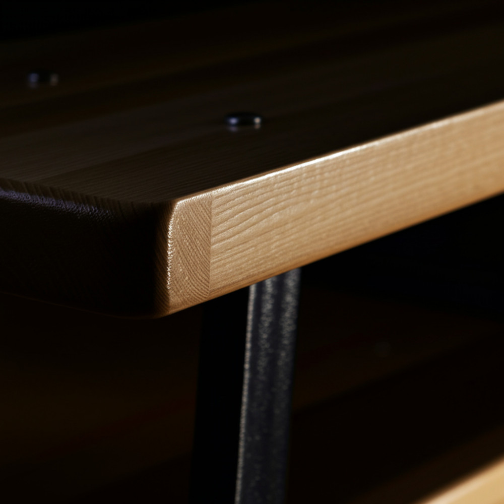 - Материал: верхняя основная доска и нижняя доска (царга) изготовлены из шлифованного массива сосны толщиной 40 мм, что обеспечивает прочность.