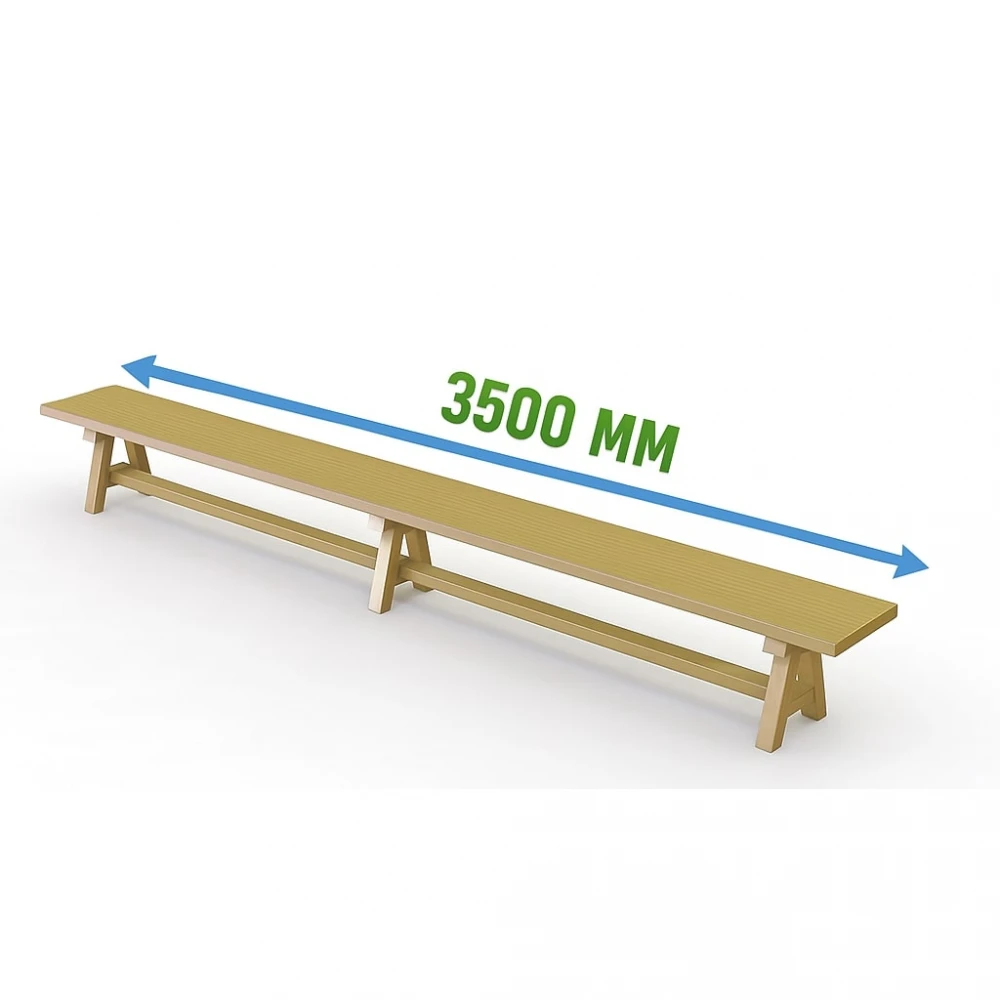 Длина: 3,5 м. Материал: массив натурального дерева. Функционал: скамья и бревно (2-в-1). Назначение: для оснащения школ, детских садов, спортивных секций.