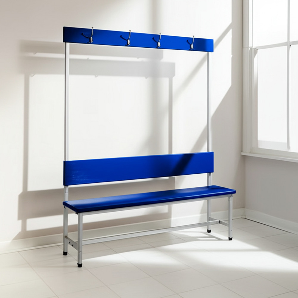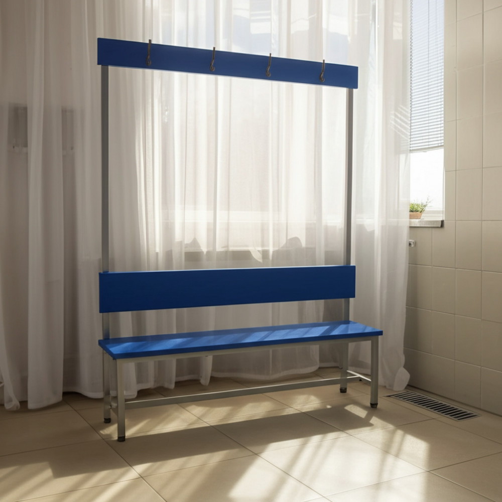 Данная скамейка предназначена для комфортного использования в раздевалках школ, спортивных комплексов и фитнес-центров. Она сочетает в себе прочность и удобство, что делает её отличным решением для любого помещения.