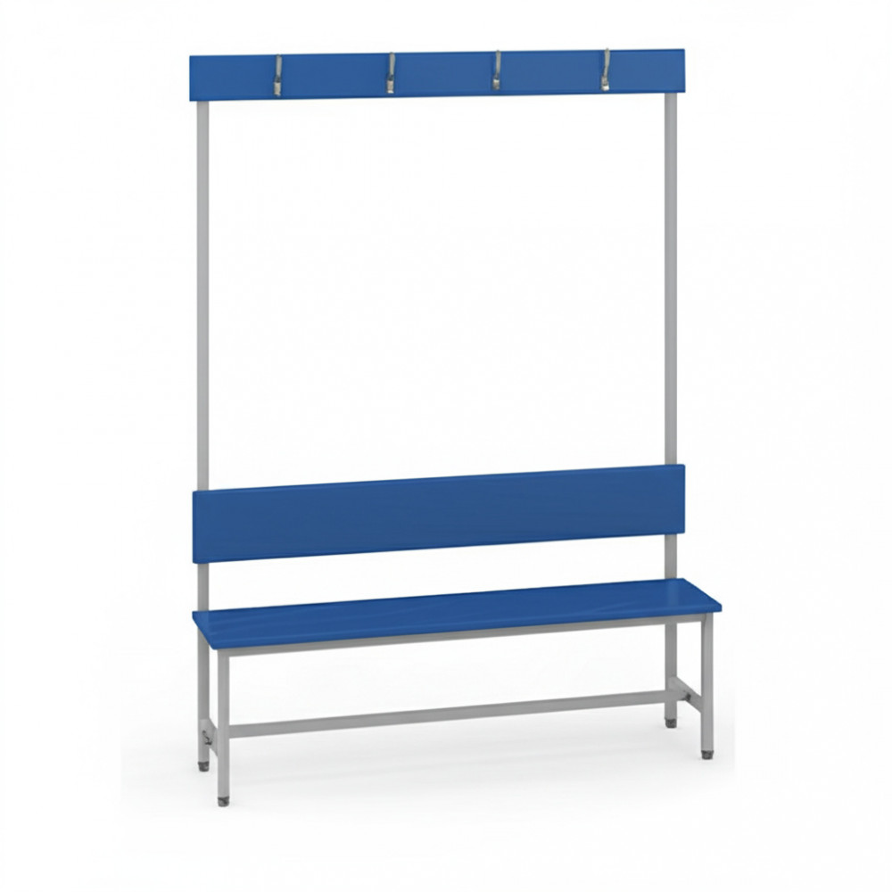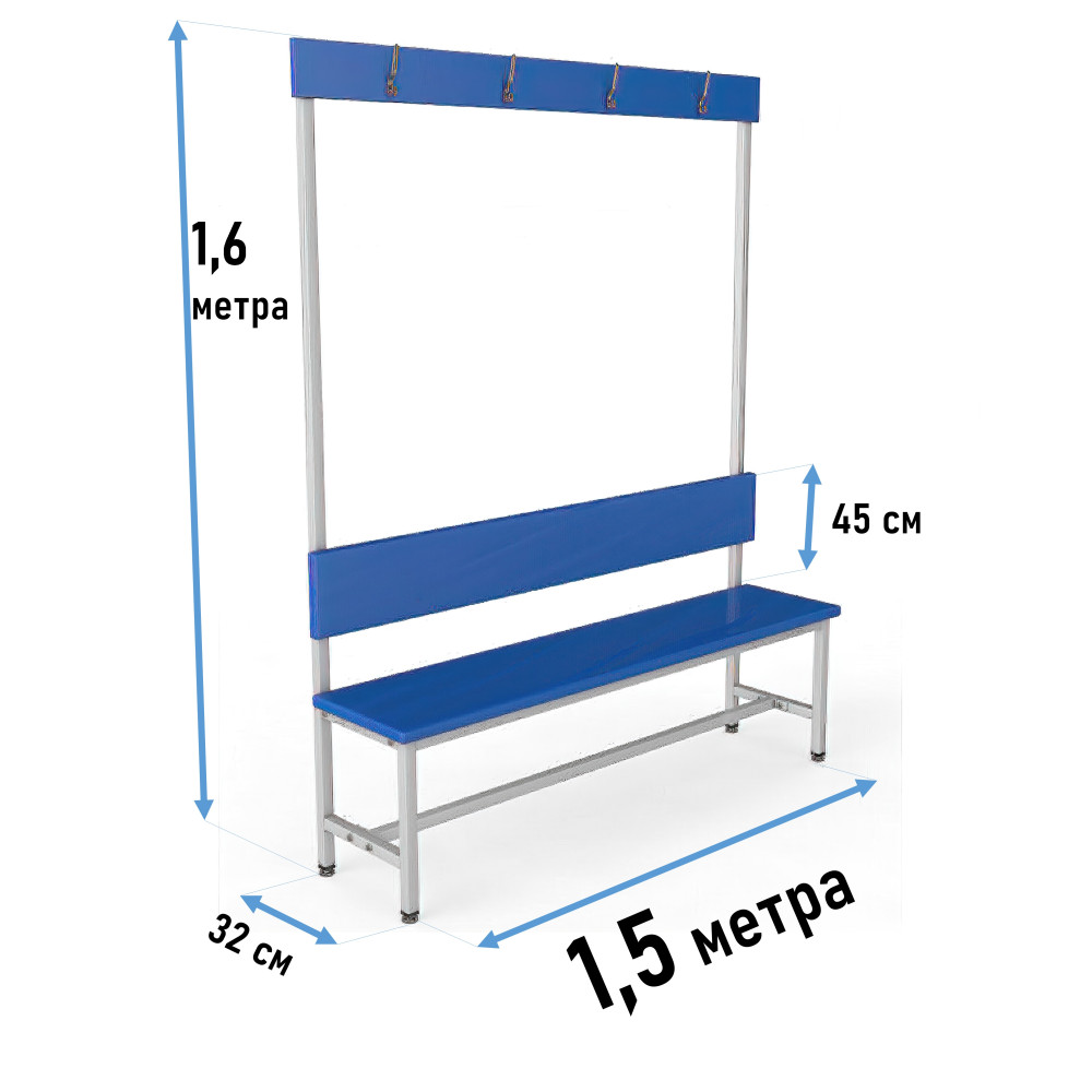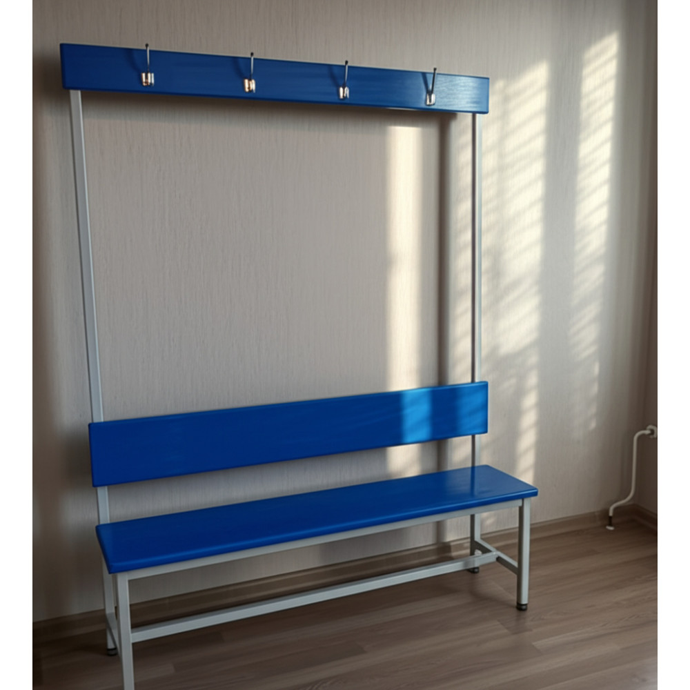 Мягкая односторонняя скамейка для раздевалки длиной 1,5 метра, предназначенная для использования в школах, спортивных комплексах и фитнес-центрах.