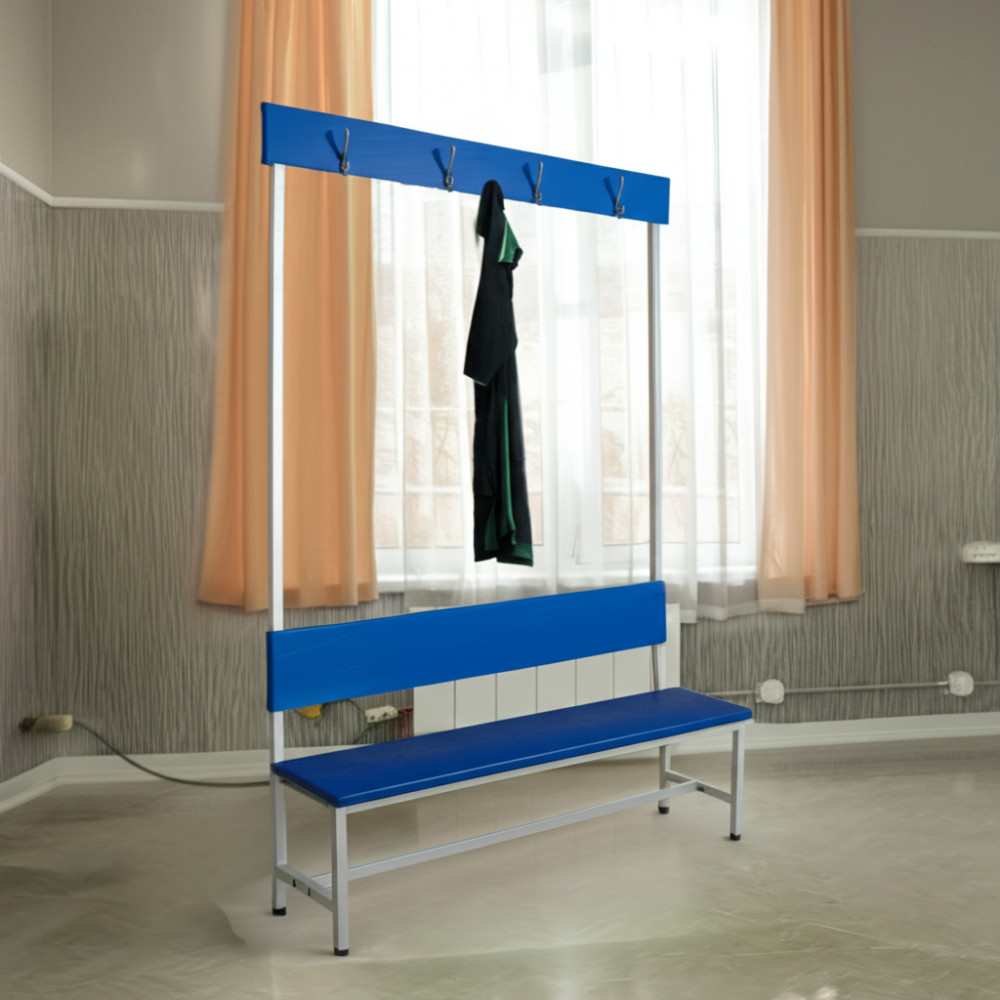 - Предусмотрена полка для обуви, что делает ее функциональной для раздевалок.