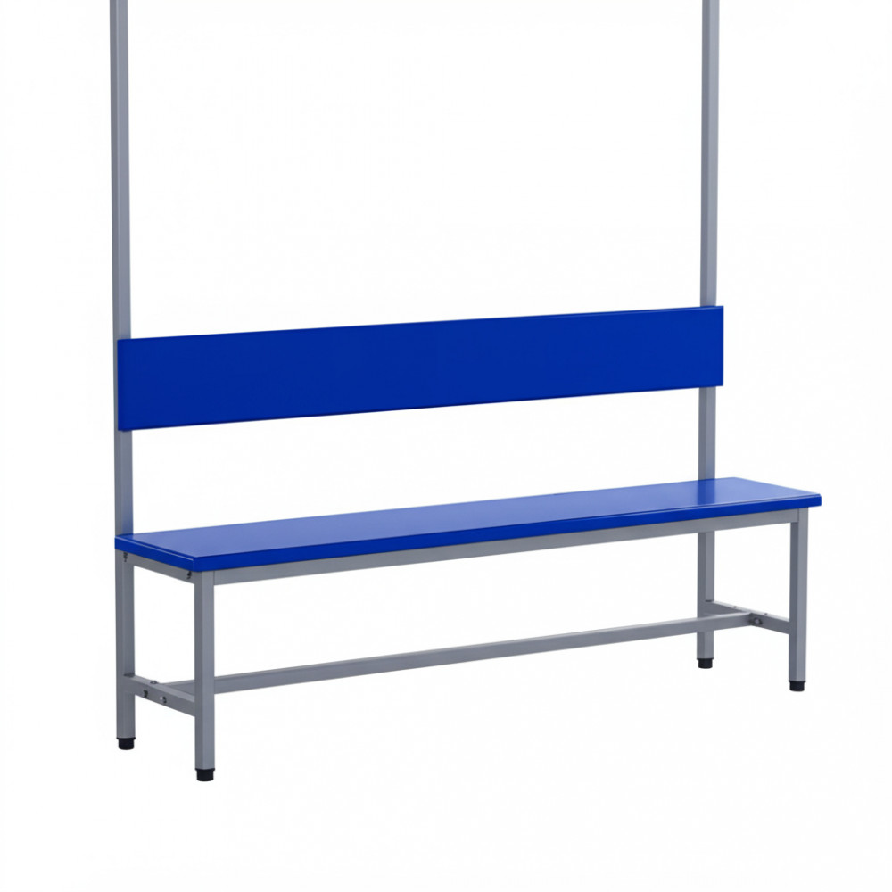 Мягкая односторонняя скамейка для раздевалок длиной 2 метра, предназначенная для установки в образовательных учреждениях и спортивных комплексах.