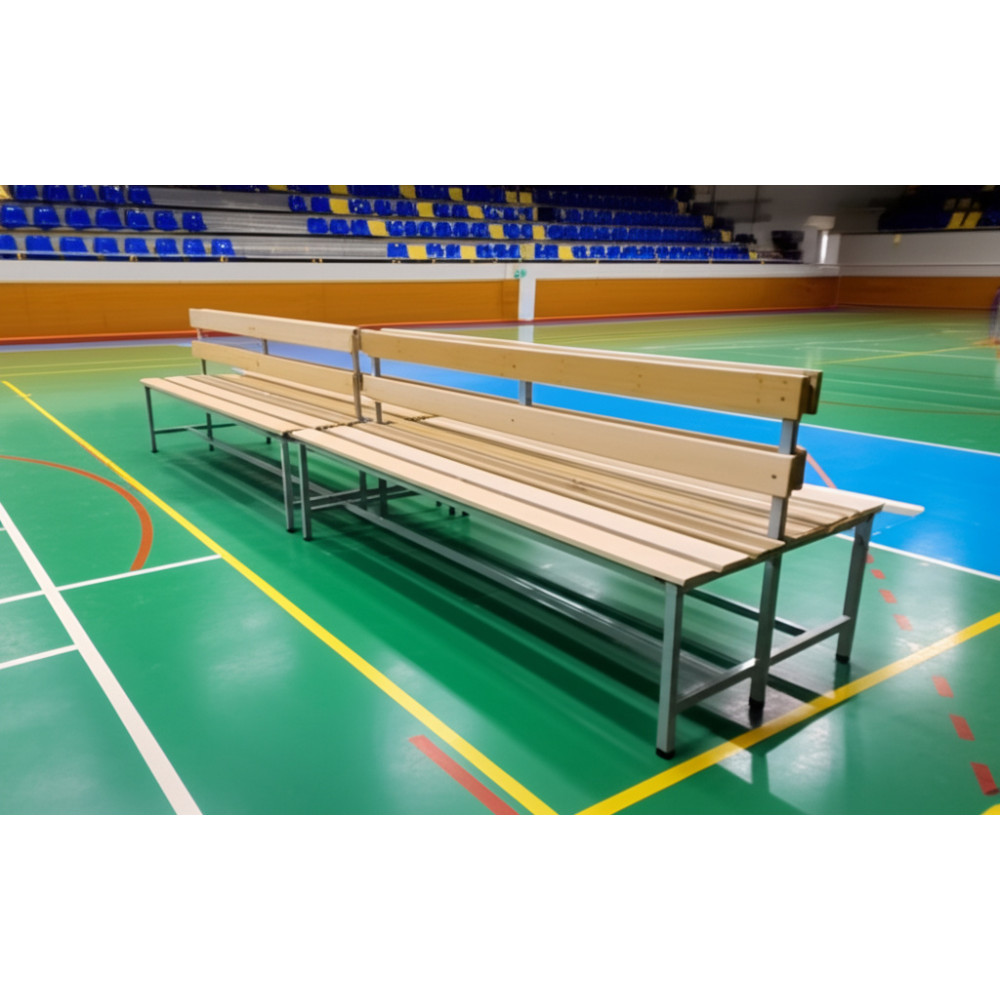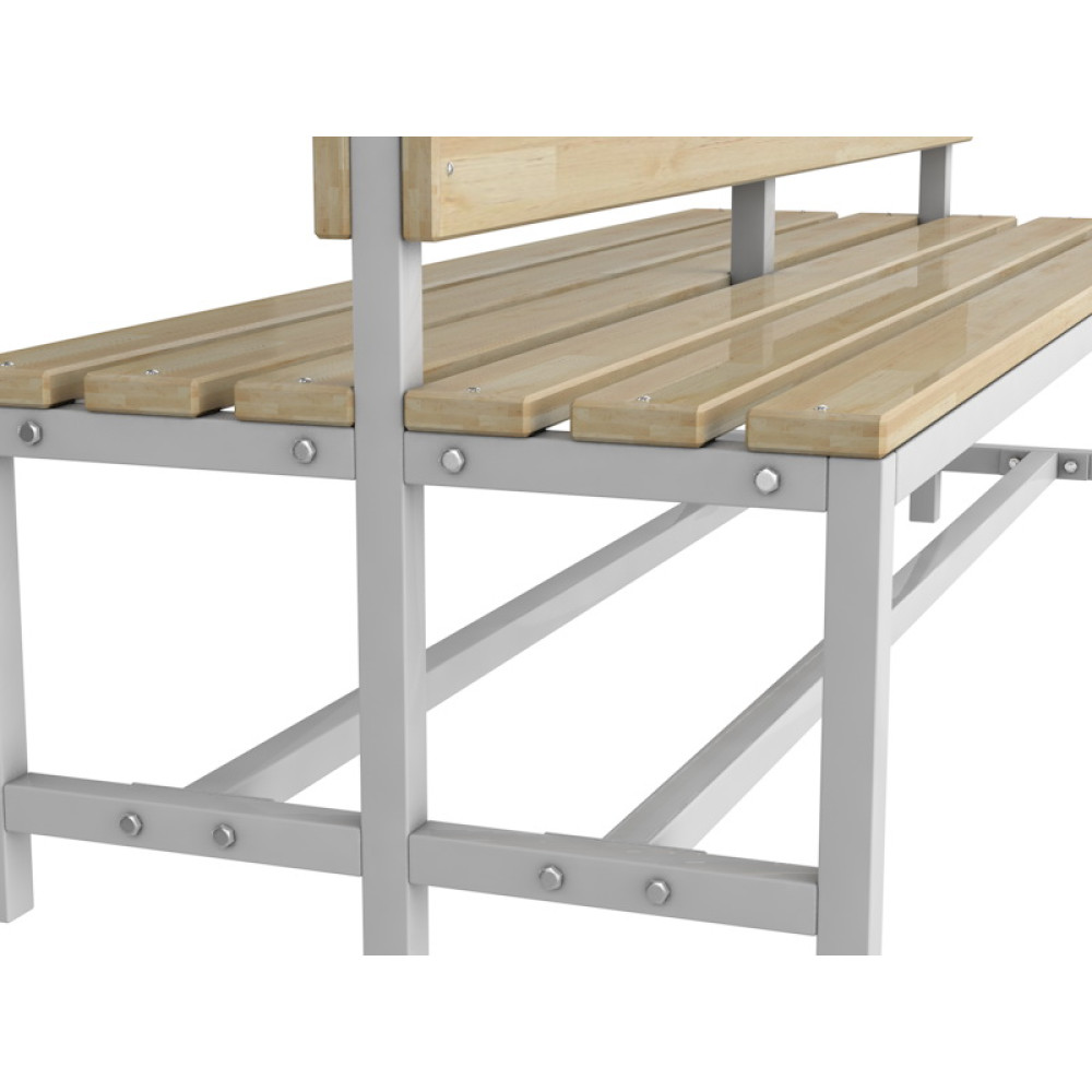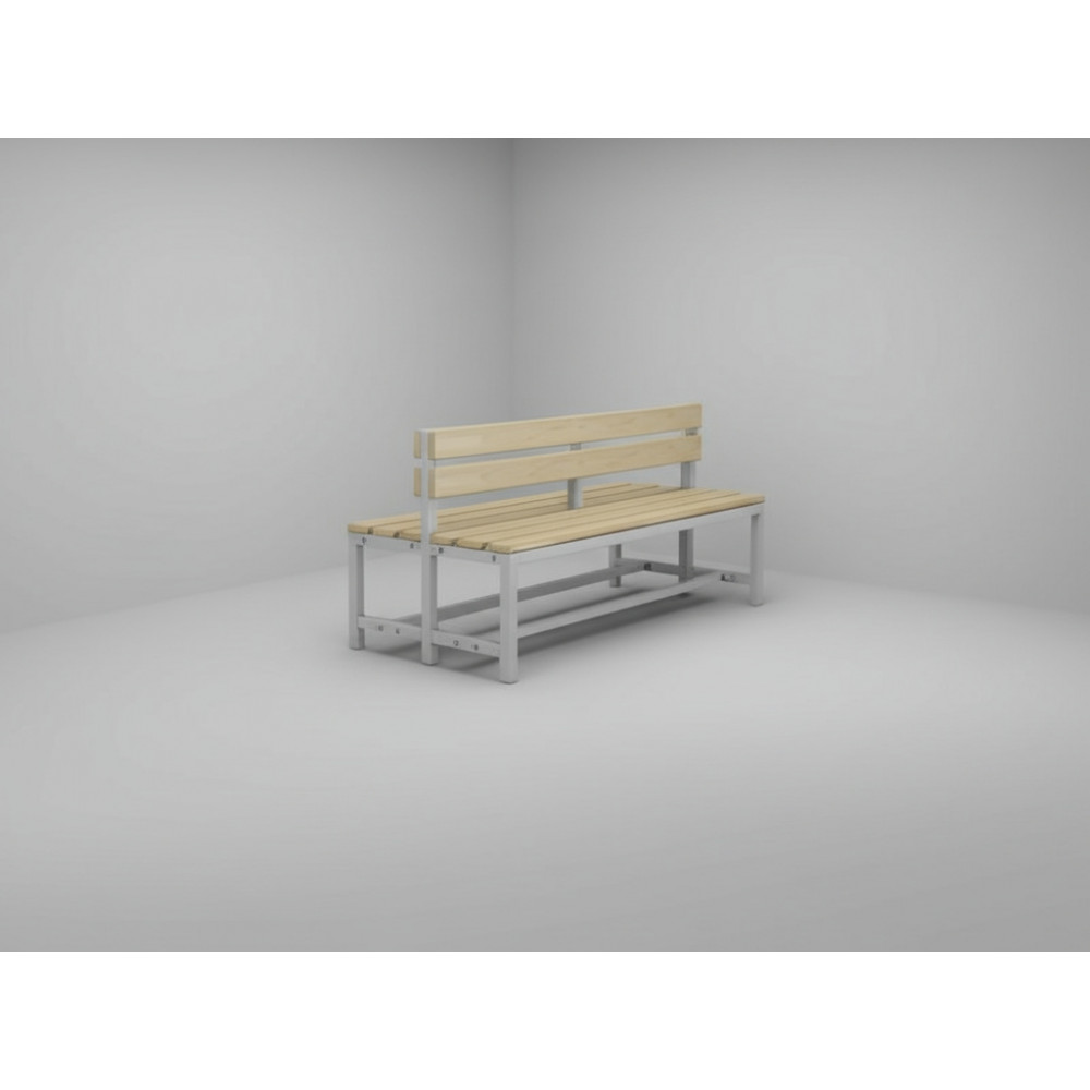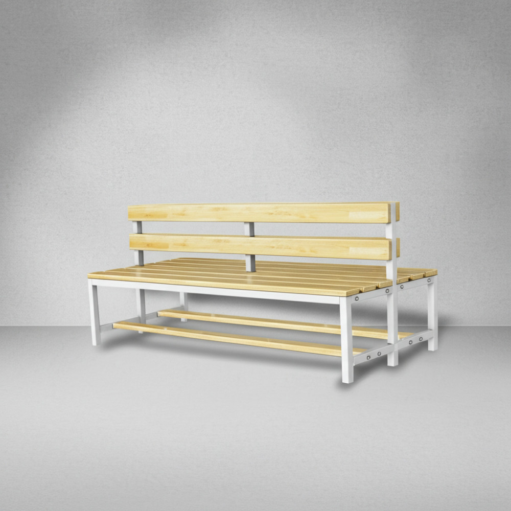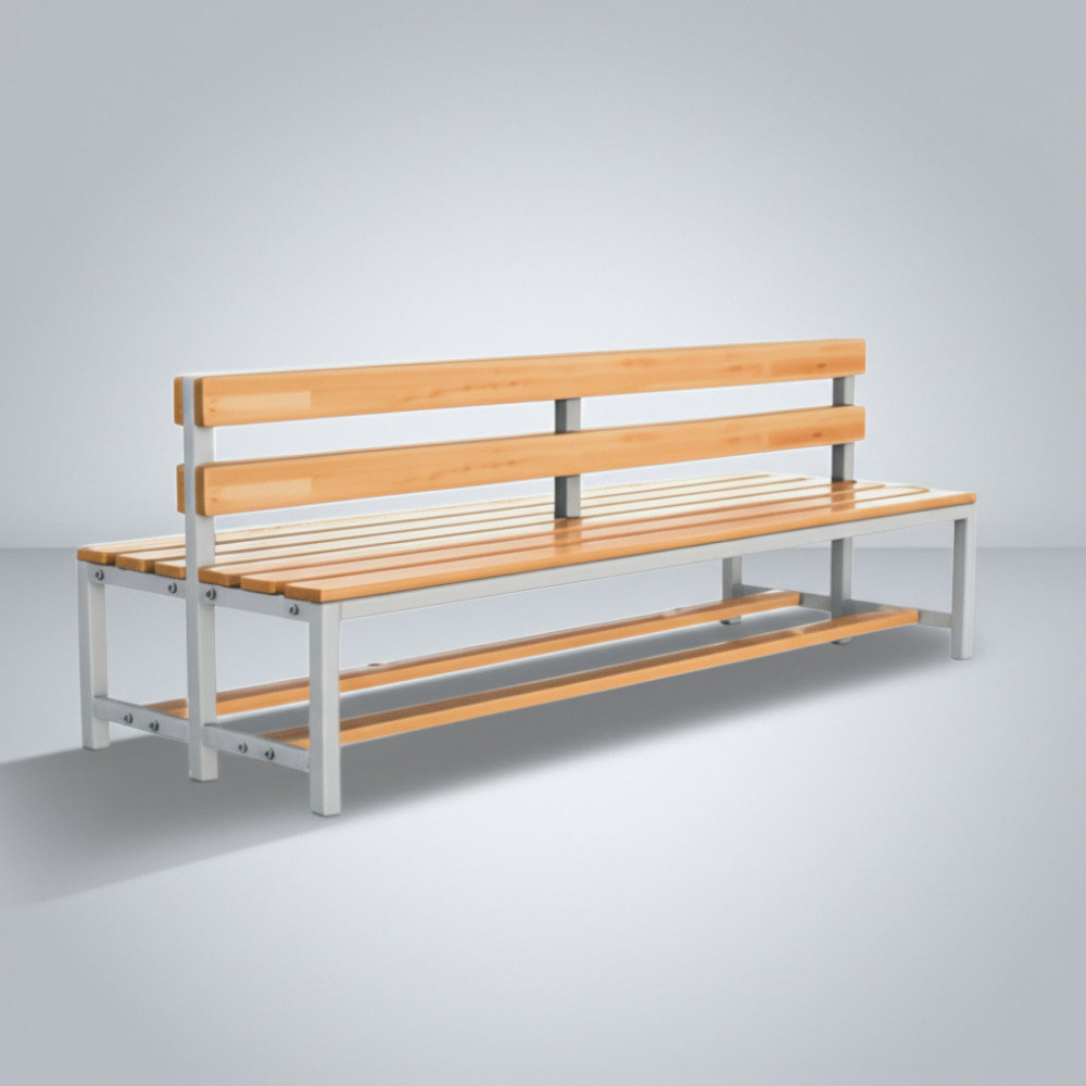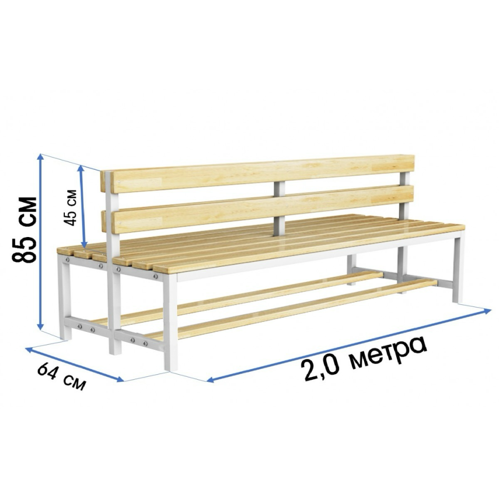 Скамейка для раздевалки двусторонняя размером 850х2000х630 мм, предназначенная для установки в школах, спортивных комплексах и фитнес-центрах.