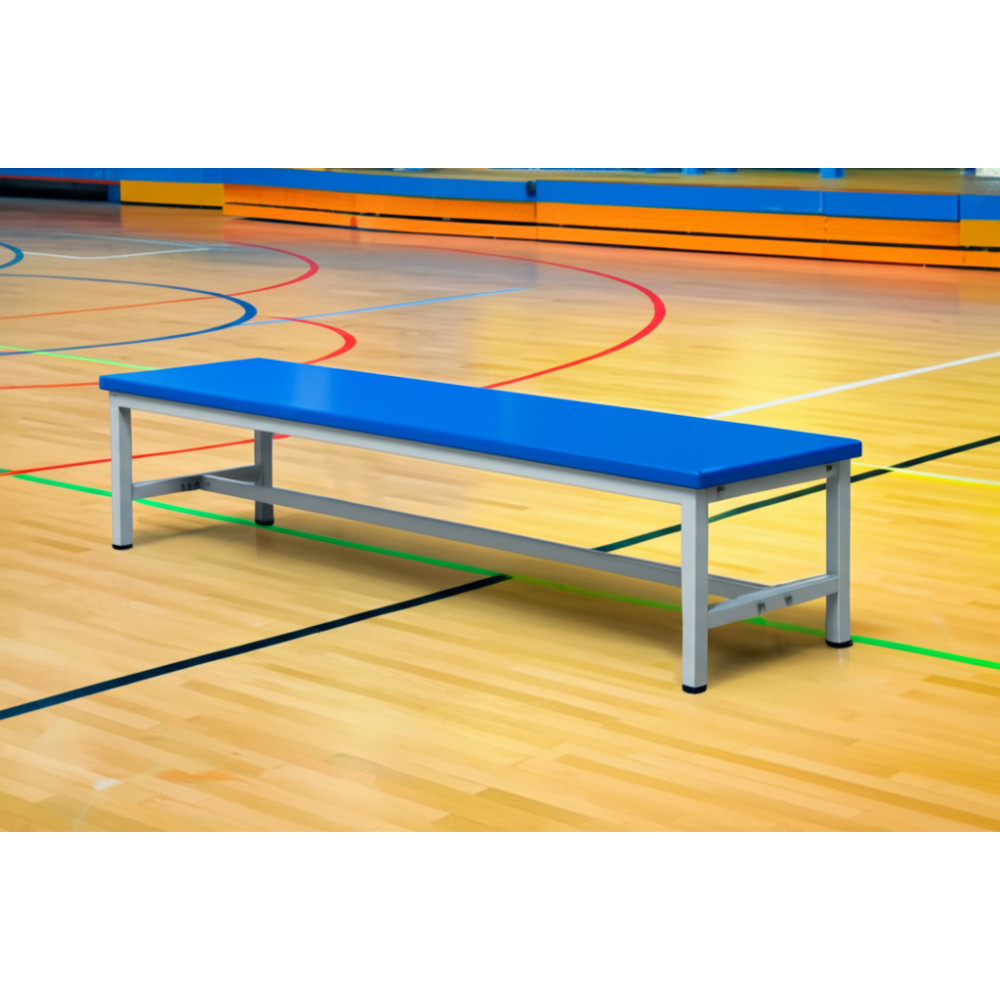 Скамейка для раздевалок без спинки "кушетка" мягкая длиной 2,0 м, предназначенная для удобства в раздевальных и гардеробных помещениях.