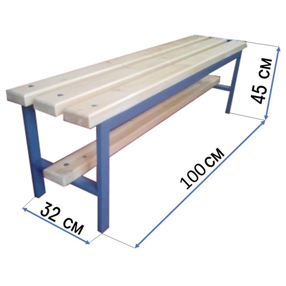 Скамейка для раздевалок без спинки (кушетка) длиной 1,0 м, предназначенная для гардеробных помещений.
