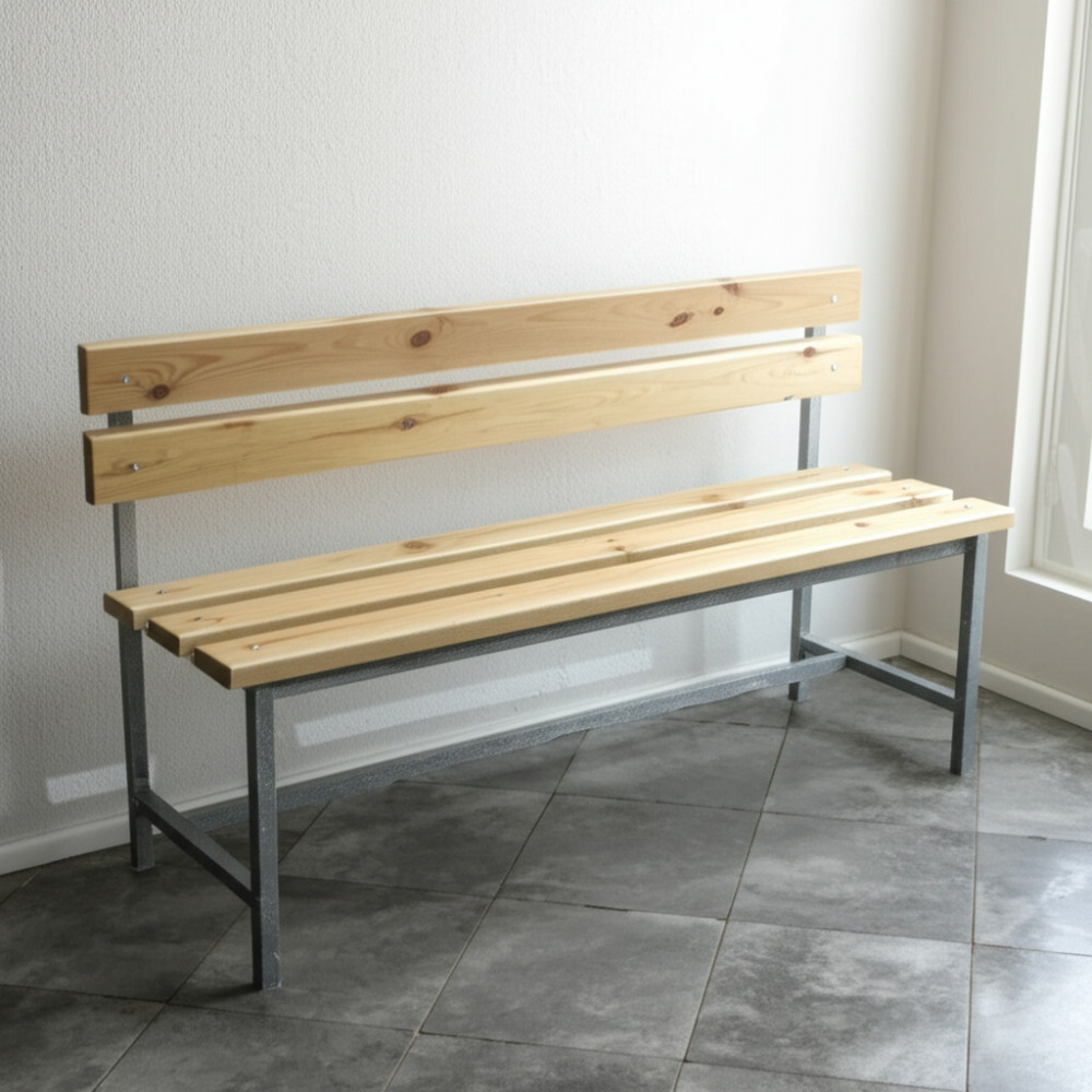 Скамейка со спинкой для раздевалок длиной 2,0 метра - идеальный выбор для спортивных комплексов и образовательных учреждений, обеспечивающий комфорт и функциональность.