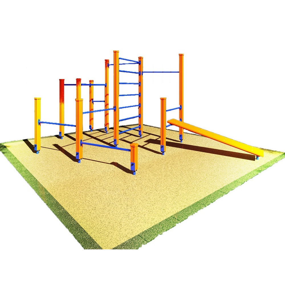Спортивный комплекс № 1 включает шведскую стенку, наклонную скамью и турники различных высот, предназначенные для тренировки основных групп мышц.