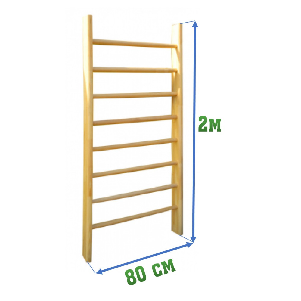 Гимнастическая стенка размером 2,0 м в высоту и 0,8 м в ширину, оснащенная 7 перекладинами, предназначена для комплексных тренировок.