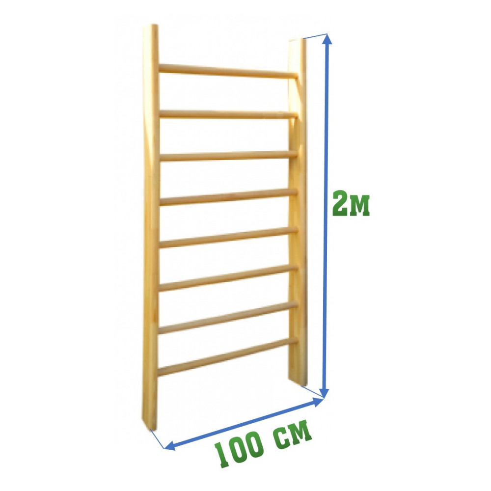 Стенка гимнастическая (шведская) размером 200x100 см, изготовленная из 7 перекладин с защитным лаком.