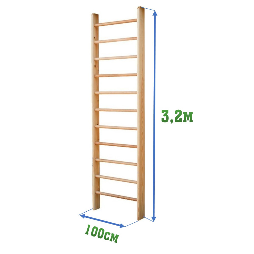 Гимнастическая стенка (шведская) с размерами 3,2 x 1,0 метра, подходит для различных занятий спортом и физической активности.
