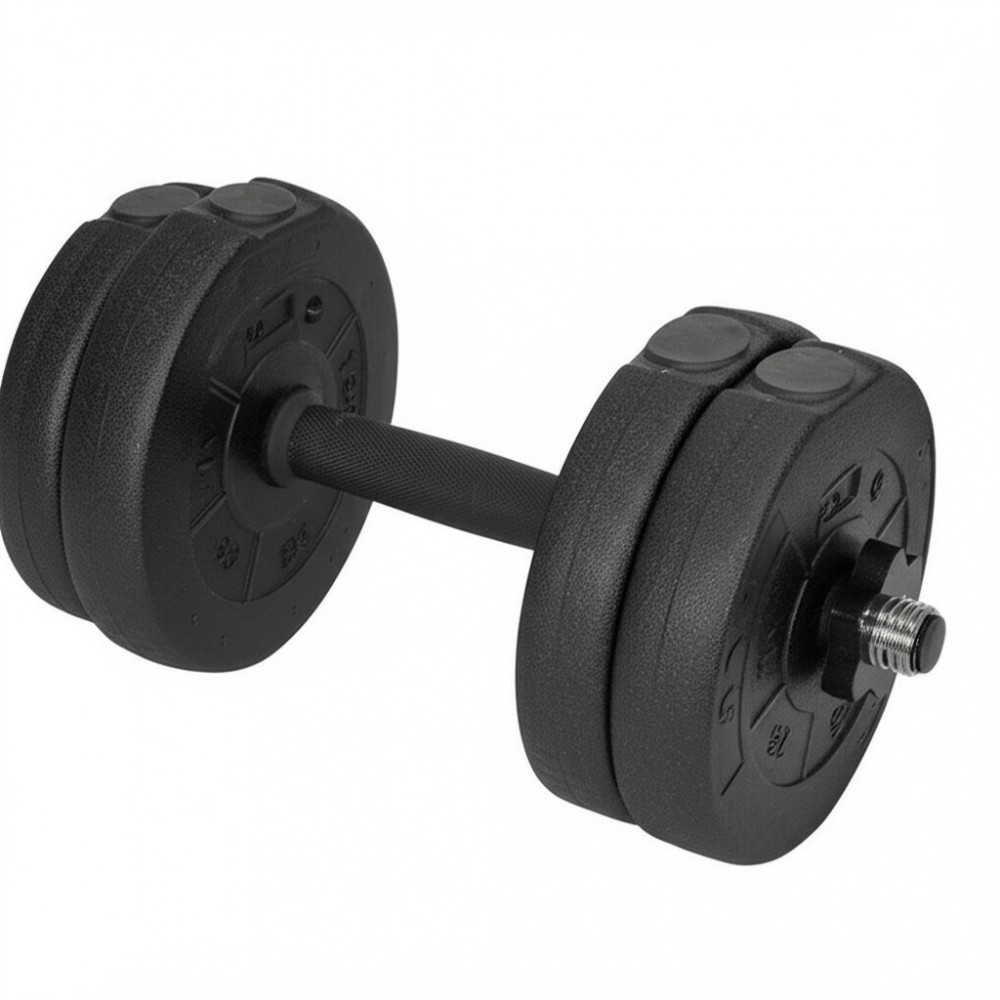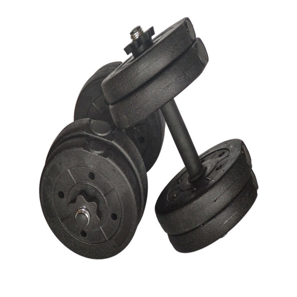 Гантельный набор разборный B31587 состоит из двух гантелей по 7,5 кг каждая, общий вес набора составляет 15 кг (цемент/пластик).