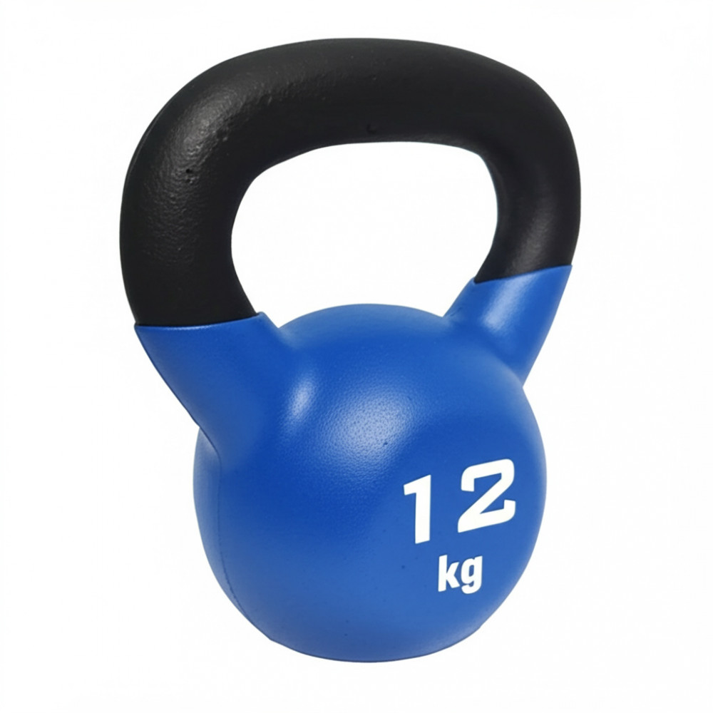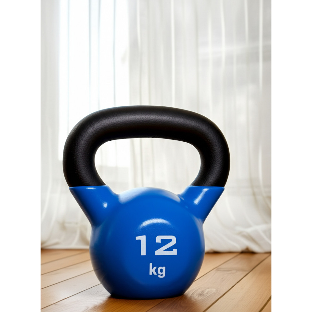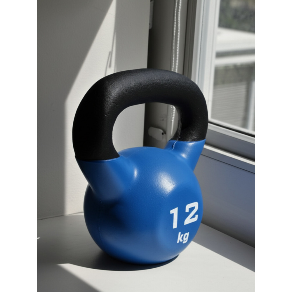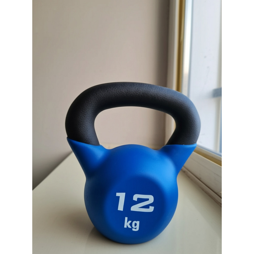 Гиря для кроссфита обрезиненная весом 12 кг, предназначенная для эффективных тренировок и развития всех групп мышц.