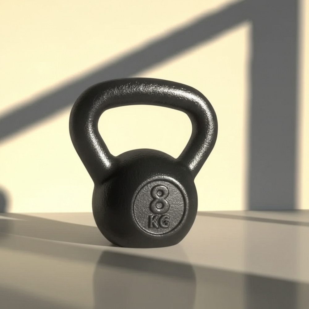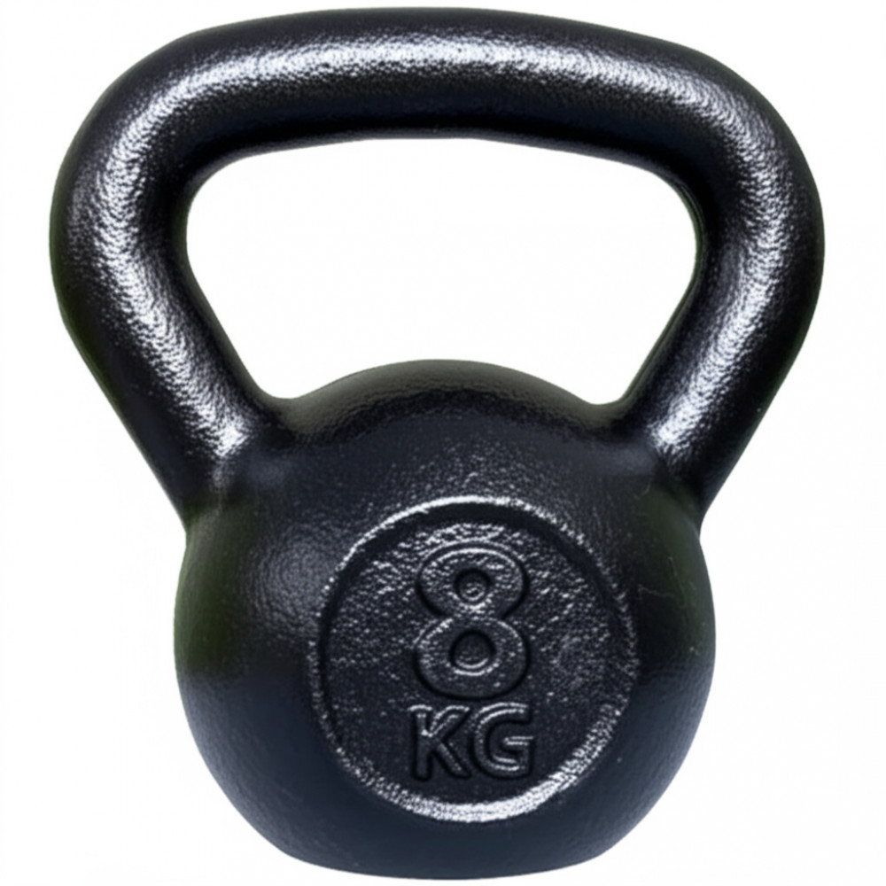 Гиря для кроссфит чугунная весом 8 кг, выполненная из цельнолитого чугуна, идеально подходит для тренировки силы и выносливости.