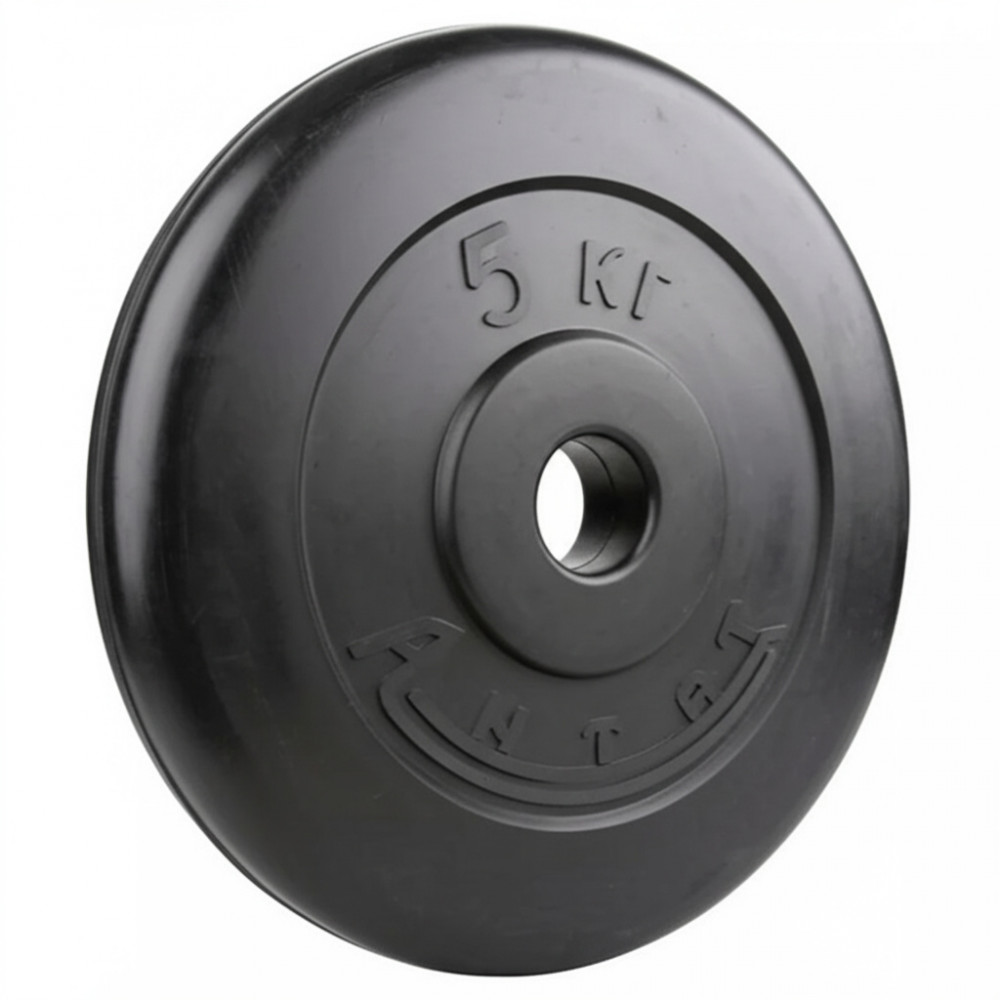 Обрезиненный диск Антат весом 5 кг с посадочным диаметром 26 мм идеально подходит для тренировок и физической активности.