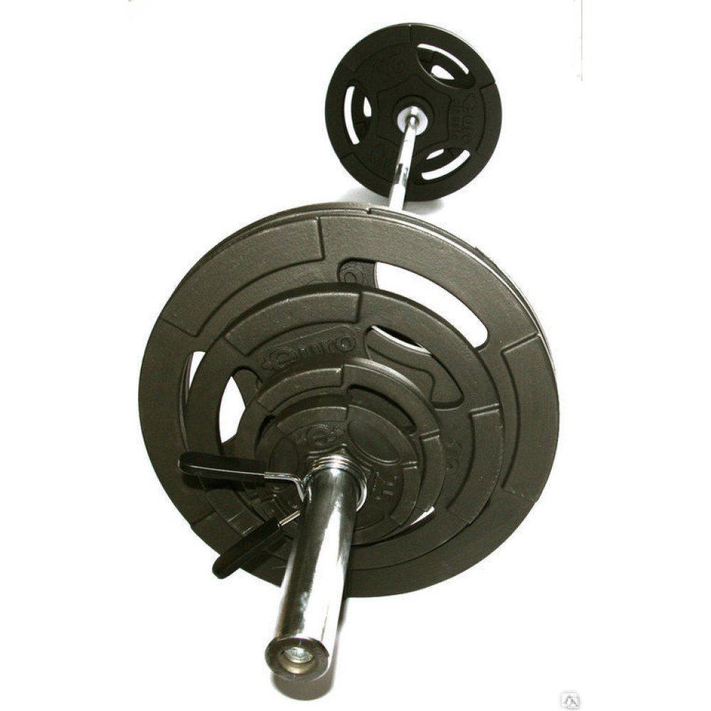 - 1 хромированный олимпийский гриф длиной 1800 мм с диаметром 51 мм
