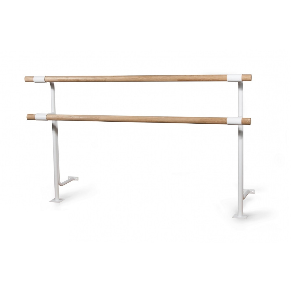 Стойка хореографического станка 2-х уровневого №17 предназначена для профессиональных и любительских занятий танцами, с высотой поручней 75 и 110 см, выполненная из качественных материалов с цветовой гаммой черного, серебристого и белого.
