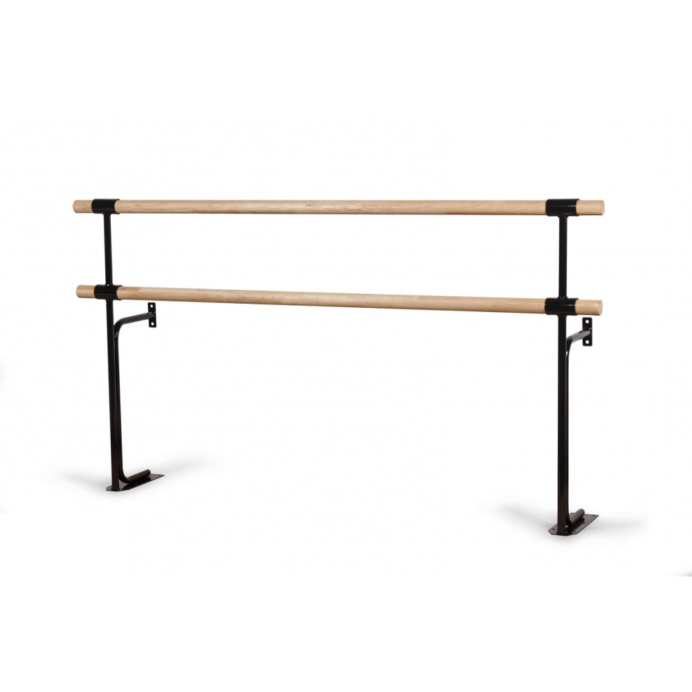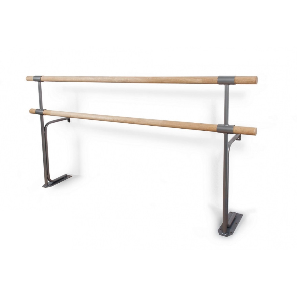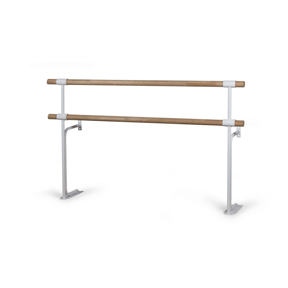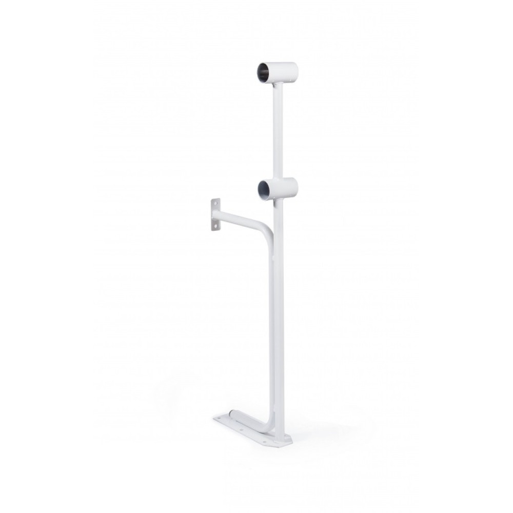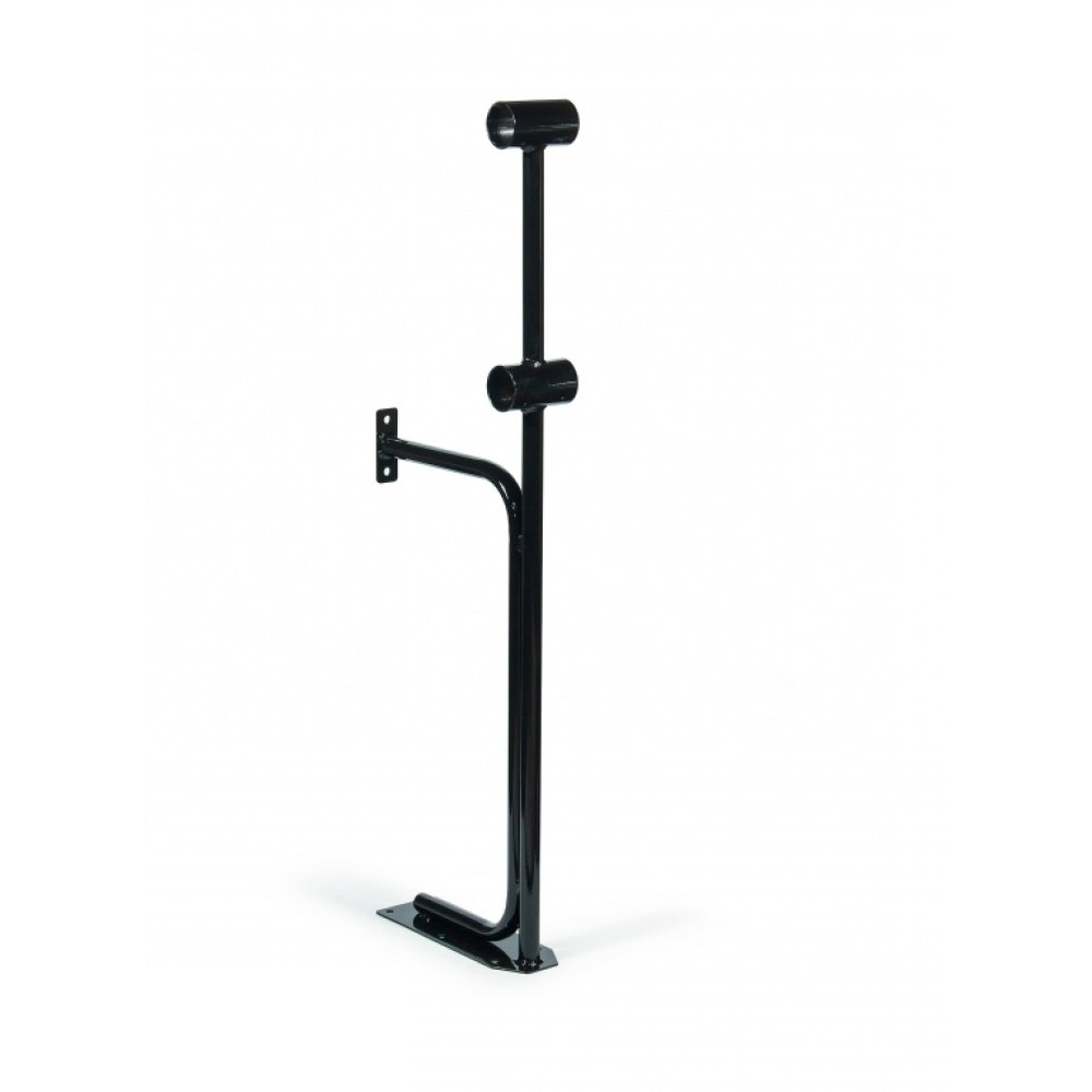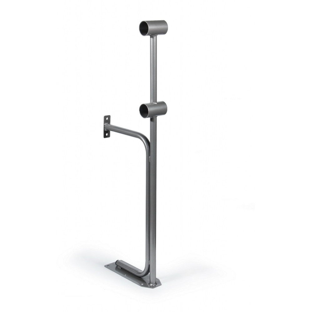 Стойка хореографического станка двухуровневая №4 - это надежная и удобная конструкция с высотой поручней 75 и 110 см, укрепленная к полу и стене, доступная в трех вариантах цветов: черном, серебристом и белом.