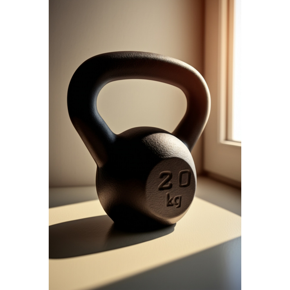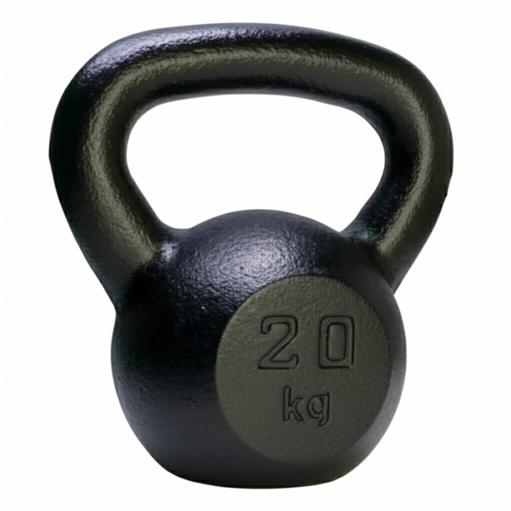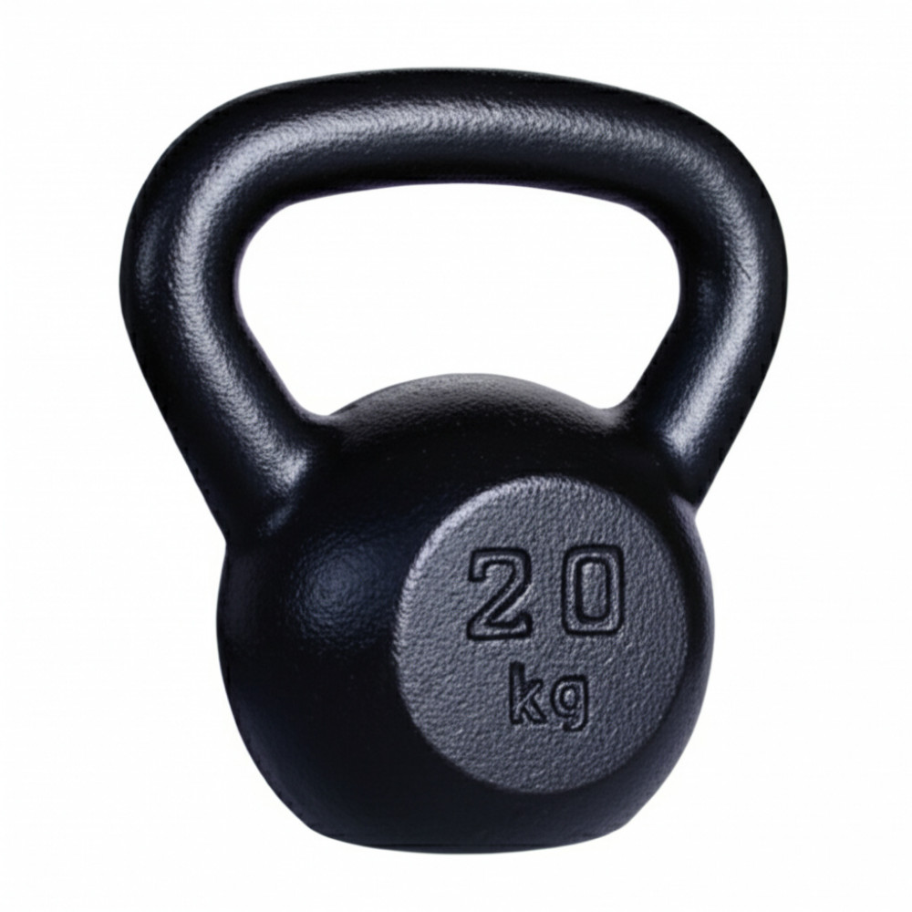 Гиря для кроссфит весом 20 кг изготовлена из цельного чугуна, идеальна для комплексных тренировок.